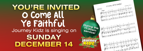 On Sunday, December 14, Journey Kidz (PreK through 5th grade) will be joining the Worship Arts Team onstage during the 11:30am worship service to sing "O Come All Ye Faithful!"