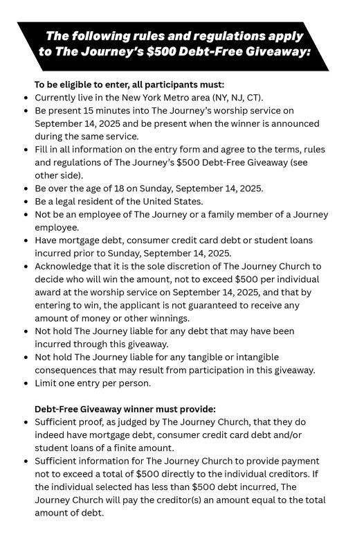 The Journey Church New York City is a casual, contemporary, Christian church for Manhattan, Queens, Brooklyn, The Bronx, Staten Island, New Jersey, and Westchester County.