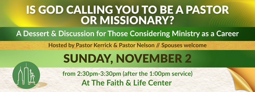 Join us for a special dessert designed for those sensing God’s call to serve as a pastor or missionary: