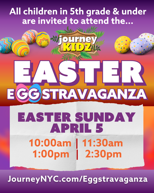 Easter is the day we've all been waiting for...a day of HOPE and new beginnings. And I want to invite you to join us as we celebrate EASTER at The Journey Church on Sunday, April 5 @ 10:00am, 11:30am, 1:00pm or 2:30pm at the AMC Empire Theater in Times Square. You can also join us on Saturday, April 4 @ 6:00pm at The Journey's Faith & Life Center.