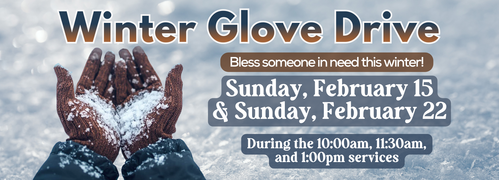 Bring your donated gloves on Sunday, February 15 or 22 to our 10:00am, 11:30am, or 1:00pm services at the AMC Empire 25 Theater in Times Square (234 W 42nd St between 7th & 8th Aves) and drop them off at the donation table in the lobby.