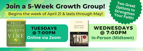 Fall Growth Group signups have closed, but have no fear! Growth Group signups will begin again in January, so you won't have to wait too long to get plugged in.