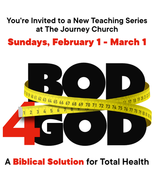 Hey! Would you be able to join me this Sunday @ The Journey Church? It's a great new teaching series called, "Bod4God: A Biblical Solution for Total Health." The music is awesome, and the messages are always practical and helpful. The services are at 10am, 11:30am, or 1pm. The website is: www.JourneyNYC.TV. Want to attend church with me?