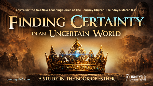 Hey Friends... I'd love for you to join me for The Journey Church Online this Sunday. It's a great new teaching series called, "Finding Certainty in an Uncertain World: A Study in the Book of Esther." The music is awesome, and the messages are always practical and helpful. The service is less than an hour, and the services begin at 10am, 11:30am, or 1pm, plus there are online services beginning at 9am, 11am, 1pm, 3pm, 5pm, 7pm, 9pm (plus additional times including Saturday Night @ 5pm and 7pm). I’d love for you to come to church this Sunday. The website is: www.JourneyNYC.TV. Want to attend church online with me?