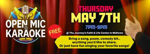 You're invited to join your friends at The Journey for a fun, relaxed night of Open Mic & Karaoke!