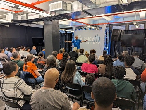 God has been growing our church over the past year - so much so that we needed to add a 3rd worship service! The Journey meets for services every Sunday at 10:00am, 11:30am, & 1:00pm in Times Square at the spacious AMC Empire 25 Theater.